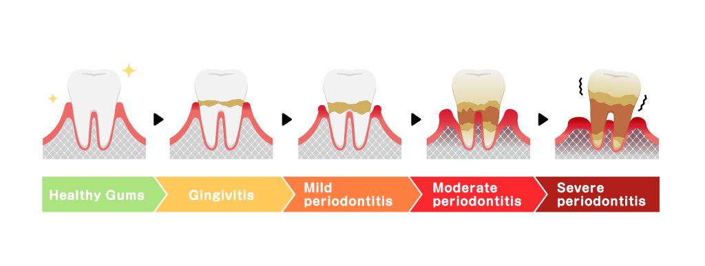 Gum disease is inflammation caused by plaque buildup. Early-stage disease (gingivitis) can progress to periodontitis if untreated.